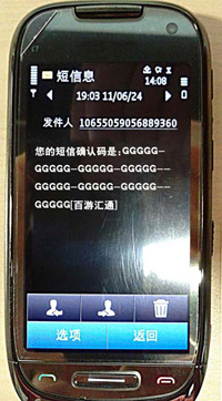 短信确认码获取方法: